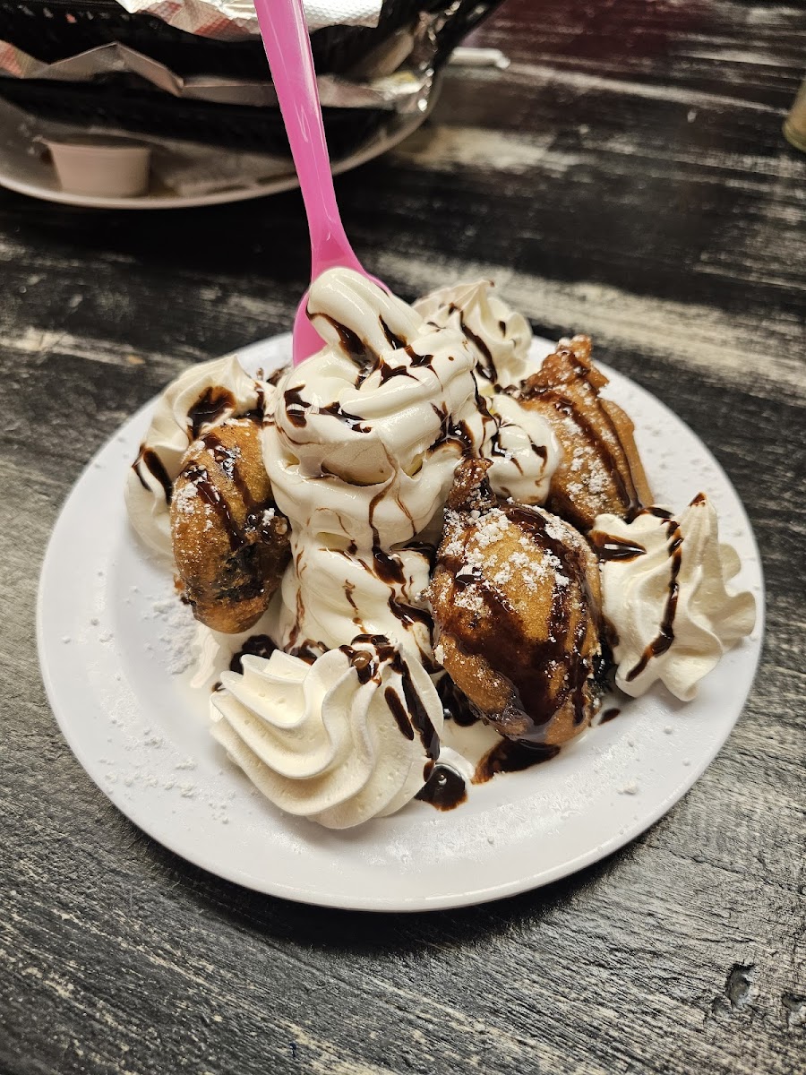 Love this retro diner and its diner food. This is where you come for comfort food. It's like you're transported back in time or you feel like you're in an episode of Riverdale when you sit in the dining area. We tried the sweet potato fries, fry dip sandwich, grilled cheese sandwich, chili, chicken and pastry, and corn chowder. Everything was overall good, but my favorites were the fry dip and chicken and pastry. The sweet potato fries were seasoned with cinnamon and sugar so it was like a dessert. They were fried just a little bit too long. Fry dip- you really can't beat the combination of french fries with shredded tender beef and cheese in a sandwich. And then top it off with a salty au jus. Heaven! The grilled cheese sandwich was big, on Texas toast, about 1.5 inches thick and 4.25 inches long. If I could change anything about it, it would be to add a little bit more cheese. But it was still filling and the buttered toast was delicious. The soups were served with oyster crackers. I could eat the chicken and pastry soup all day long. It hit the spot on the coldest day of the week. The chili was like any typical chili. The corn chowder was creamy and sweet from the corn. Our server was nice and checked on us throughout the meal. High chairs and kids menu are available. There is parking right in front of the restaurant. Parking rules are always changing, but currently for December 2023, it's free parking 5 PM and after.